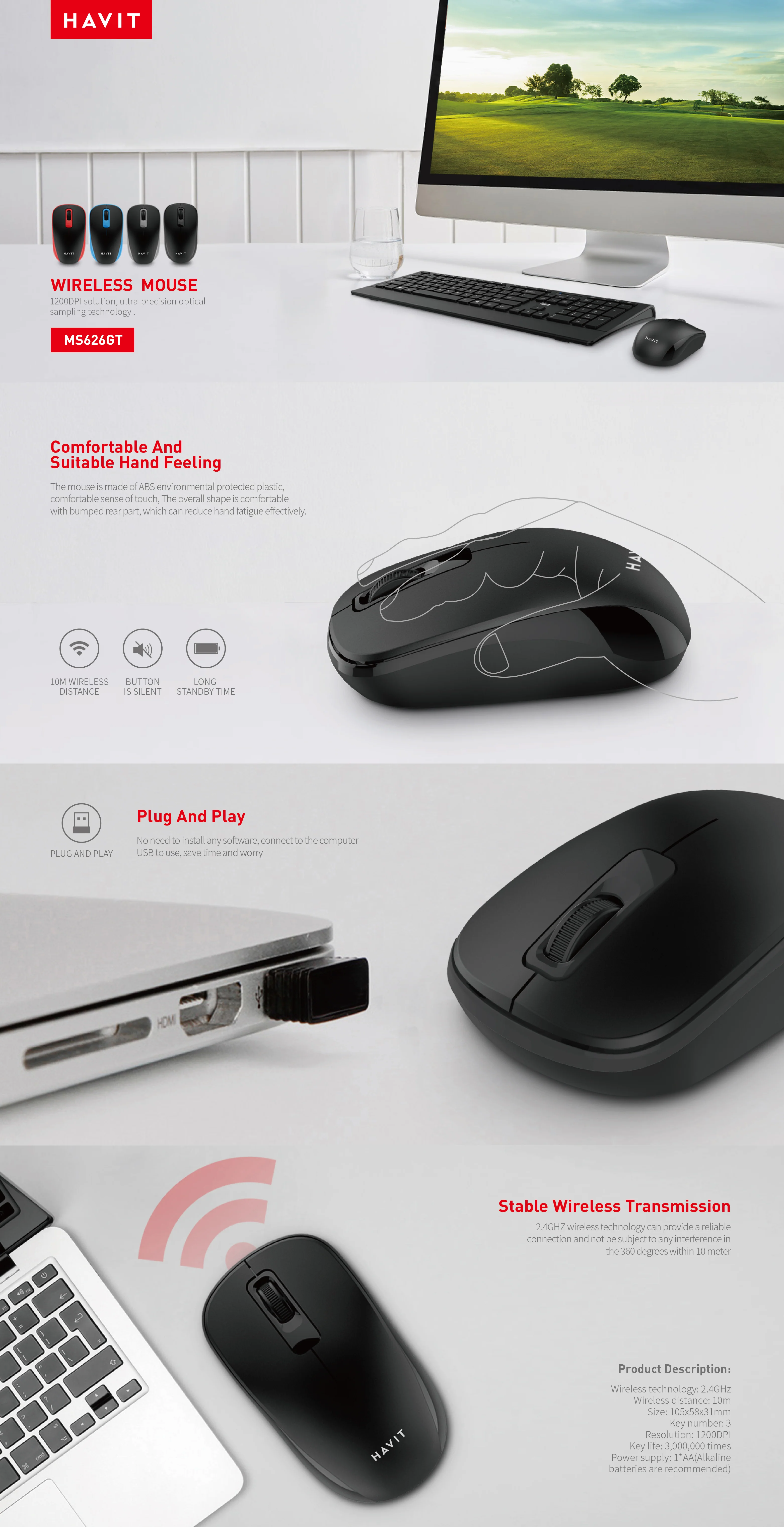 The HAVIT MS626GT is equipped with a high-precision optical sensor that ensures smooth and accurate cursor movement. Enjoy improved aim, better control, and faster reactions during intense gaming sessions.