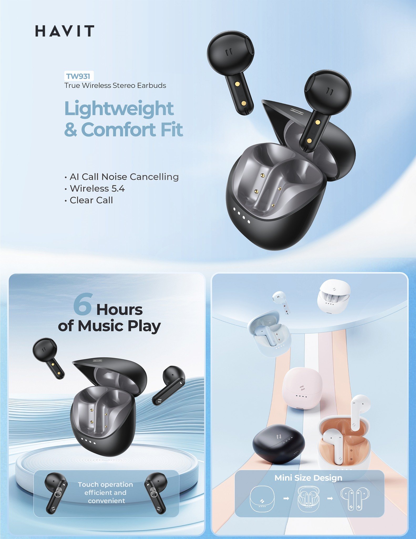 Enjoy everyday listening with the Havit TW931! These mini wireless earbuds feature Bluetooth 5.4, 10mm drivers for clear stereo sound, and noise-reducing calls. Compact, lightweight, and perfect for music, calls, and daily use in Nigeria 🇳🇬🎶